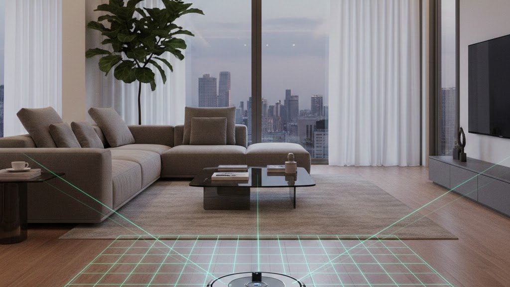LiDAR의 가장 큰 장점은 '정확도'입니다. 초당 수천 번 레이저를 회전하며 쏘기 때문에, 집안의 도면을 그리는 속도가 굉장히 빠르고 오차가 거의 없습니다. 처음 청소기를 돌릴 때 거실 한 바퀴만 슥 돌면 스마트폰 앱에 우리 집 평면도가 완벽하게 그려지는 마법을 볼 수 있습니다. 벽과의 거리, 가구의 위치를 밀리미터 단위로 파악하니 청소 경로가 매우 효율적일 수밖에 없죠.
