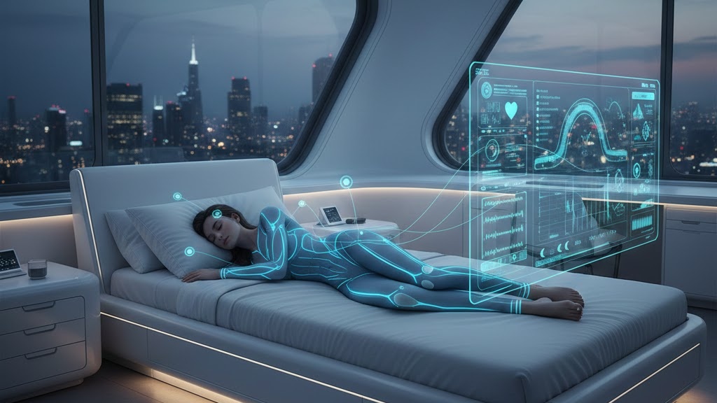 2026년 스마트 웨어러블 통계에서 가장 눈에 띄는 대목은 '슬립테크(Sleep-tech)'와 결합한 스마트 잠옷의 폭발적인 수요입니다. 전체 스마트 의류 시장의 약 25%를 점유하기 시작한 스마트 잠옷은 이제 현대인의 필수적인 건강 관리 도구로 자리 잡았습니다. 과거에는 수면 상태를 확인하기 위해 불편한 패치를 붙이거나 시계를 차고 자야 했지만, 이제는 옷감 자체가 센서가 되어 사용자의 호흡, 체온, 뒤척임 횟수를 정밀하게 측정합니다.