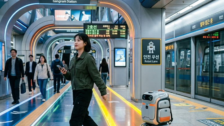 국내 지하철역은 베리어 프리(Barrier-free) 설계가 잘 되어 있다고는 하지만, 여전히 개찰구의 좁은 틈과 열차와 승강장 사이의 간격(단차)은 로봇 백팩에게 큰 시련입니다. 최신 모델들은 약 3~5cm 정도의 문턱은 가뿐히 넘지만, 지하철 틈새에 바퀴가 끼거나 개찰구 센서가 백팩을 '미결제 무단 승차'로 오인해 차단바를 내려버리는 민망한 상황이 발생할 수 있습니다. 2026년 기준 법령에 따르면 아직 이러한 '자율 주행 개인 화물'에 대한 명확한 통과 규정이 정립되지 않아, 역무원의 제지를 받을 가능성도 배제할 수 없습니다.
