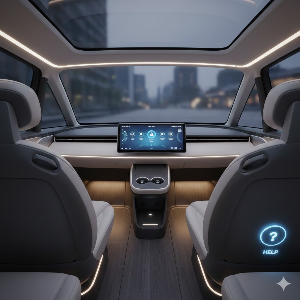 과거 레벨 3 단계에서는 사람이 운전대를 다시 잡아야 하는 '제어권 전환' 요구가 빈번했습니다. 하지만 레벨 4 로보택시에는 아예 운전대(스티어링 휠)가 없는 경우가 많습니다. 이때 가장 중요한 것은 내부 디스플레이나 물리 버튼으로 존재하는 '비상 정지(Emergency Stop)' 기능의 위치를 파악하는 것입니다. 예기치 못한 차내 결함이나 건강 이상이 생겼을 때, 우리가 할 수 있는 유일한 수동 조작이기 때문입니다.