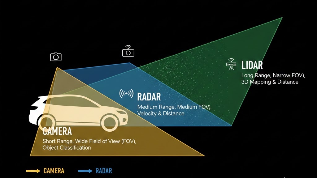 사람이 눈으로 도로를 보듯, 자율주행차는 다양한 '센서'를 통해 주변 환경을 인식합니다. 어느 하나가 최고라고 말하기 어려운 이유는 각 센서마다 잘하는 역할이 명확히 다르기 때문입니다.