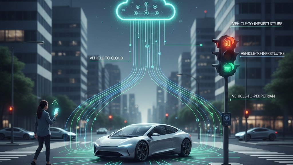 자동차 혼자서만 잘한다고 자율주행이 완성되지는 않습니다. 주변 인프라와 끊임없이 대화해야 하죠. 이것을 V2X(Vehicle to Everything)라고 부릅니다. 차가 신호등과 대화하고, 앞서가는 차와 대화하며, 심지어 보행자의 스마트폰과도 신호를 주고받습니다.