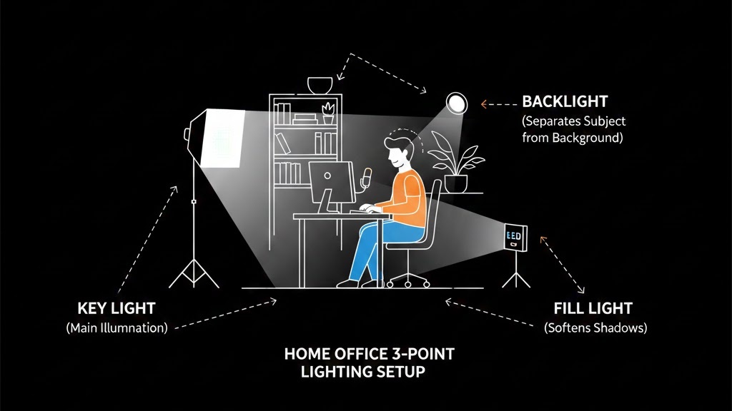 아무리 좋은 카메라라도 조명이 엉망이면 제 성능을 낼 수 없습니다. 특히 목걸이나 귀걸이 같은 금속 소재의 액세서리는 조명 각도에 따라 '고급스러운 포인트'가 되기도 하고, '눈부신 방해 요소'가 되기도 합니다. 전문 유튜버들이 사용하는 3점 조명 원칙을 화상 과외에 적용해 봅시다.