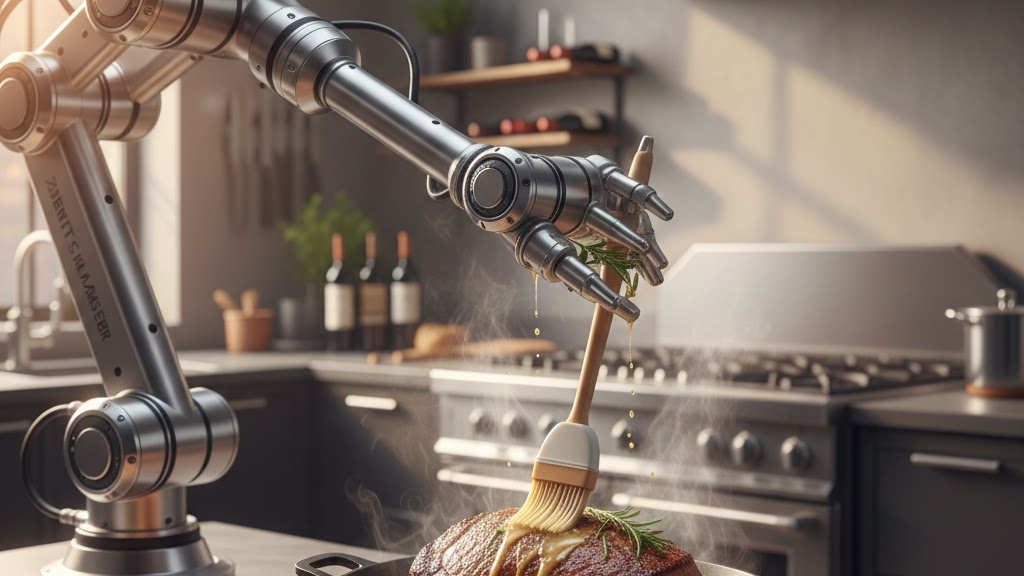 마지막은 제니스(Zenith) 마스터입니다. 이 로봇은 전 세계 미슐랭 스타 셰프들의 움직임을 딥러닝으로 학습한 모델로 유명합니다. 특히 한국의 한우 전문 셰프들의 시어링 기법을 데이터화하여 미경산한우에 최적화된 'K-Steak' 모드를 탑재하고 있습니다.