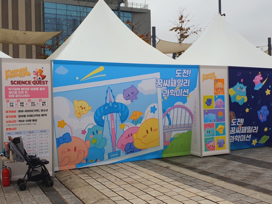 행사장 내에는 '사이언스 푸드존'이 별도로 조성되어 푸드트럭 20여 대가 상시 대기합니다. 스테이크, 닭강정, 츄러스 등 일반적인 메뉴 외에도 대전의 마스코트 '꿈돌이' 모양의 빵이나 캐릭터 음료 등 한정판 간식들을 판매합니다.
