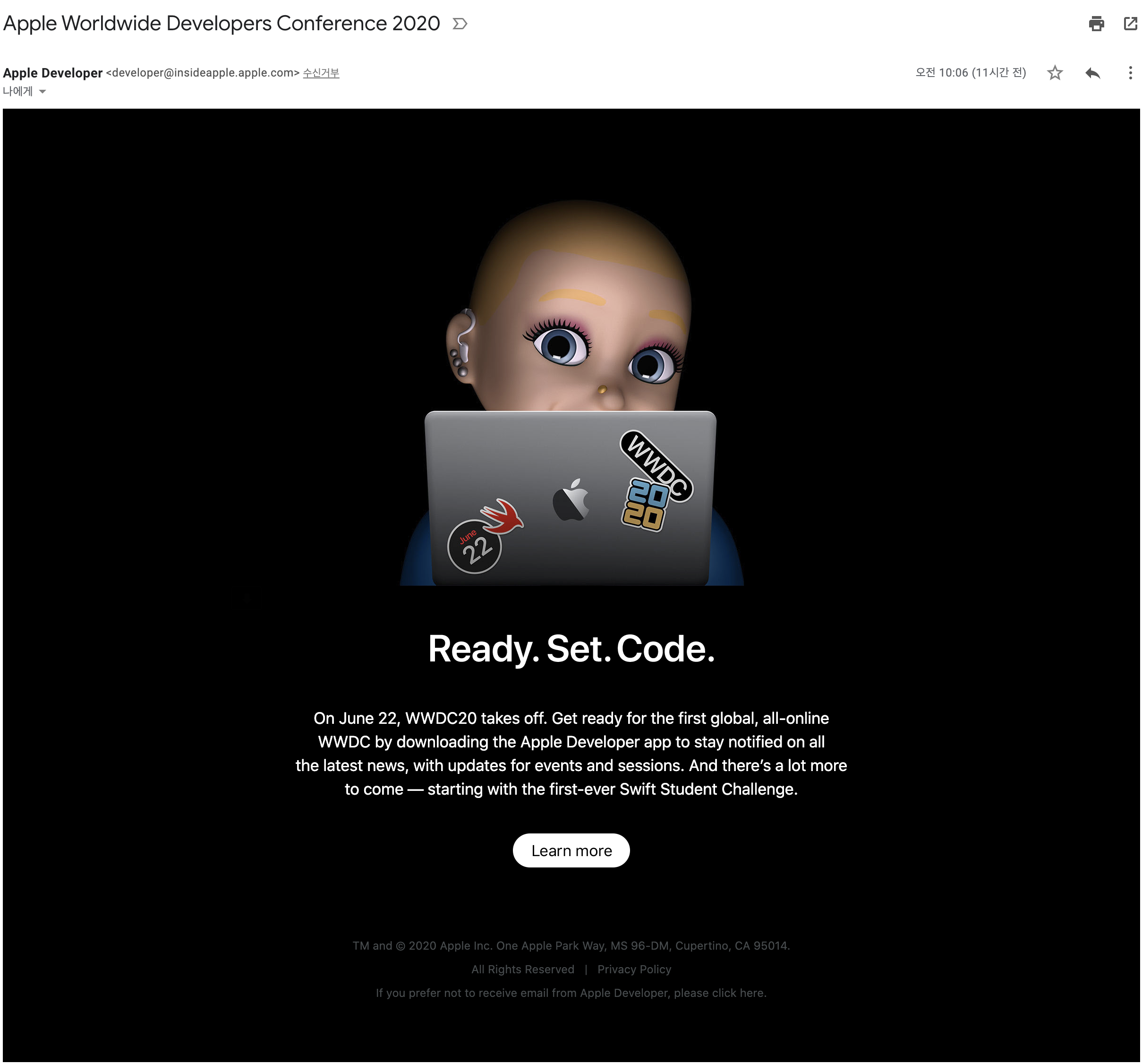 오늘 오전에 애플에서 받은 메일입니다. WWDC이 계절이 다가오고 있습니다. 벌써~~~!!!