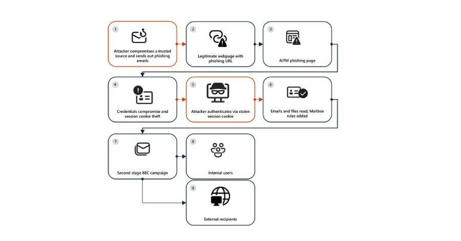 Microsoft는 신뢰할 수 있는 SharePoint 이메일을 남용하는 다단계 피싱 및 BEC 캠페인에 대해 에너지 회사에 경고합니다. 도난당한 세션 쿠키를 사용하면 받은 편지함 메시지를 삭제하고 자동으로 읽어 공격자가 숨어 있는 상태를 유지할 수 있습니다. 한 번의 인수로 인해 연락처 전반에 걸쳐 600개 이상의 피싱 이메일이 발송되었습니다. 세부정보→