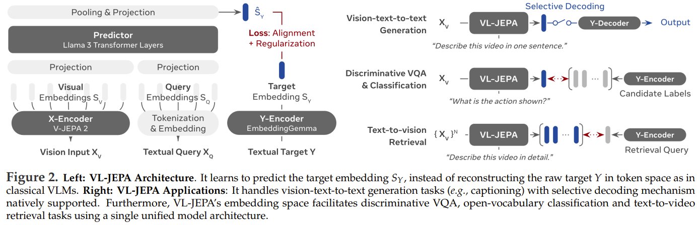 LeCun's JEPA has evolved into a vision-language model, with 1.6B parameters rivaling the 72B Qwen-VL. Instead of predicting words directly, the proposed VL-JEPA learns to predict the core "meaning" of a text in an abstract space, ignoring surface-level wording variations. This