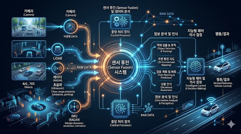 2026년 현재, 도로 위에서 '자율주행'이라는 단어는 더 이상 낯선 미래의 이야기가 아닙니다. 고속도로에서 차선을 유지하고 앞차와의 간격을 조절하는 수준을 넘어, 이제는 복잡한 도심 속에서도 스스로 경로를 찾는 차량들이 속속 등장하고 있죠. 하지만 우리가 편안하게 시트에 기대어 앉아 있는 동안, 자동차는 1초에도 수백 번씩 엄청난 양의 데이터를 처리하며 '생존을 위한 사투'를 벌이고 있다는 사실, 알고 계셨나요? 인간이 눈으로 보고 뇌로 판단하듯, 자율주행 자동차에게도 세상을 바라보는 '눈'이 필요합니다.