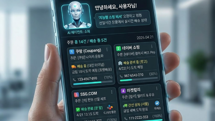 불과 1~2년 전만 해도 우리는 택배가 어디쯤 왔는지 궁금할 때마다 각 쇼핑몰 앱을 일일이 열어야 했습니다. 쿠팡, 네이버, 무신사, 그리고 이름도 가물가물한 보세 의류 사이트까지... 로그인하고 마이페이지에 들어가 배송 조회를 누르는 그 번거로운 과정을 당연하게 여겼죠. 하지만 2026년 하반기, 대형 언어 모델(LLM)의 진화형인 '액티브 에이전트(Active Agent)' 기술이 본격화되면서 우리의 일상은 마법처럼 변하고 있습니다.
