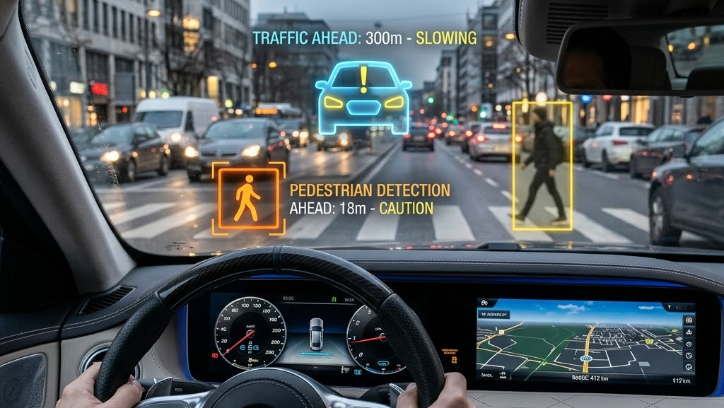 기존의 자율주행 센서인 라이다(LiDAR)나 카메라는 '가시거리' 내의 위험만 감지할 수 있다는 한계가 있었습니다. 건물에 가려진 골목길에서 튀어나오는 아이나, 대형 트럭 뒤에서 갑자기 차선을 변경하는 차량은 인지하기 어려웠죠. 하지만 V2X 스마트 교차로 시스템은 교차로에 설치된 초정밀 센서가 주변 상황을 360도로 파악한 뒤, 각 차량의 대시보드와 헤드업 디스플레이(HUD)에 정보를 직접 쏴줍니다. 횡단보도 근처에 보행자가 있다는 사실을 차가 먼저 알고 속도를 줄이는 식이죠.