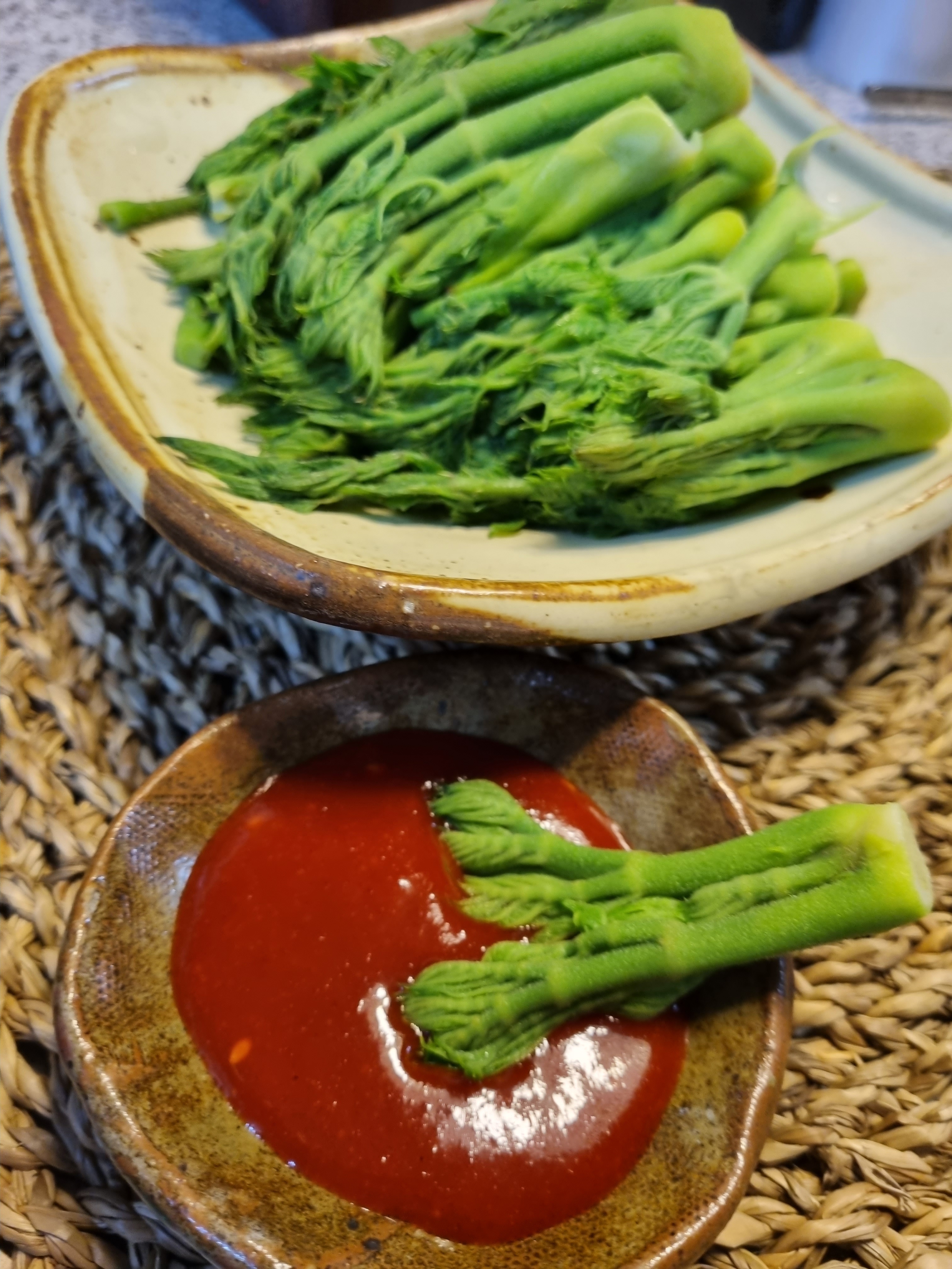 물기를 뺀 두릅은 키친타월 위에 올려 남은 수분을 제거하면 초고추장을 찍어 먹었을 때 양념이 겉돌지 않고 싹 스며듭니다.