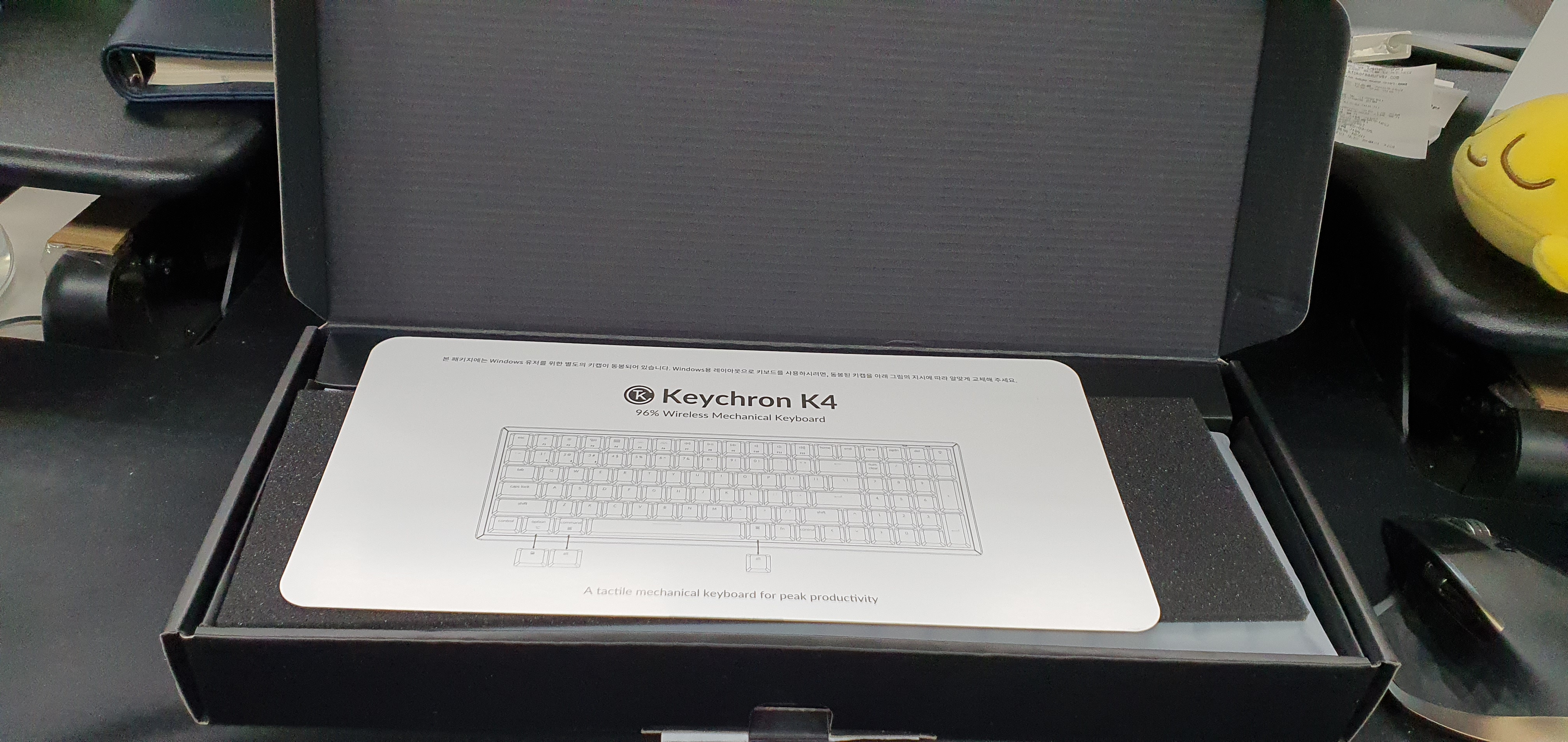 지난 2월 키크론에서 K4 예약판매 광고를 보고, 순간 혹~!하는 마음이 들었습니다. 디자인은 이쁜데... 하던 차에, "맥과 윈도우 레이아웃 모두 완벽하게 지원" 한다는 문구를 읽고 딸아이 입학선물이라는 합리화로 결국 알루미늄 RGB LED에, 소리가 가장 적다는 적축을 구매하였고, 거의 한달을 기다려 받아 보게 되었습니다.