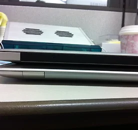 전자제품을 살때 속는 한가지, "컨버전스라고 해서 항상 하나만 가지고 다닐 수는 없다"는 것입니다. 아이폰은 많이 쓰시는 분은 외장밧데리, 혹시 몰라 전원케이블 등을 가지고 다녀야 합니다. 그러려니 하죠? ^^;; 현존 슬림 제품의 대명사인 맥북에어도 마찬가지 입니다. 전원어댑터, 마우스, 지금은 키보드까지 들고 다니니, 슬림이란 말이 무심합니다. =_=;; 몇번 사무실에 전원어댑터를 집에 안가지고 가서, 두어시간 사용하다 데탑으로 옮겨간 적이 있어서 고민하던 차에, 지름신의 강림을 별고민 없이 영접하였습니다. ㅠ,.ㅠ;; 재고가 많아서 일까요? 익일 사무실로 날라온 애플 트레이드 노란상자. 생각보다 박스가 컸습니다. 오호? 지금 전원어탭터를 사용 중이라 아는데, 마우스만한 크기라 별다른 생각이 없었는데..